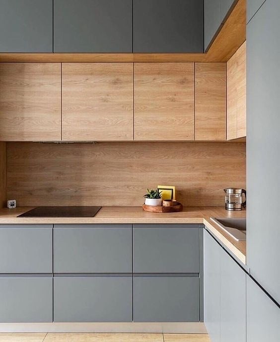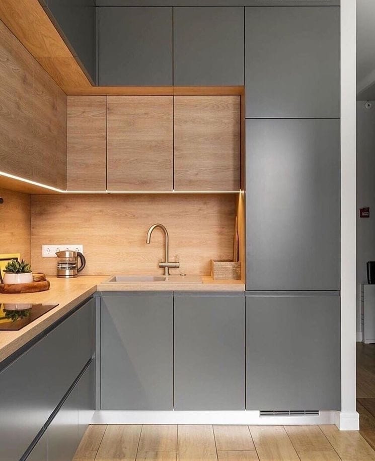 Единый древесный декор фасадов, корпуса и столешницы.