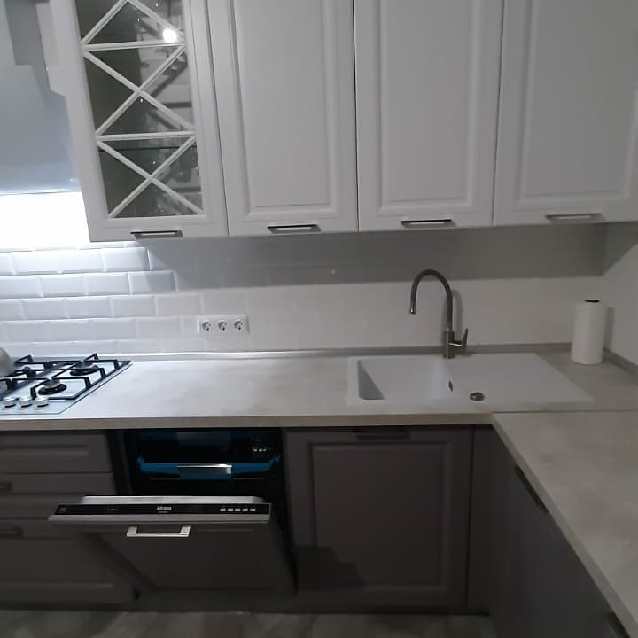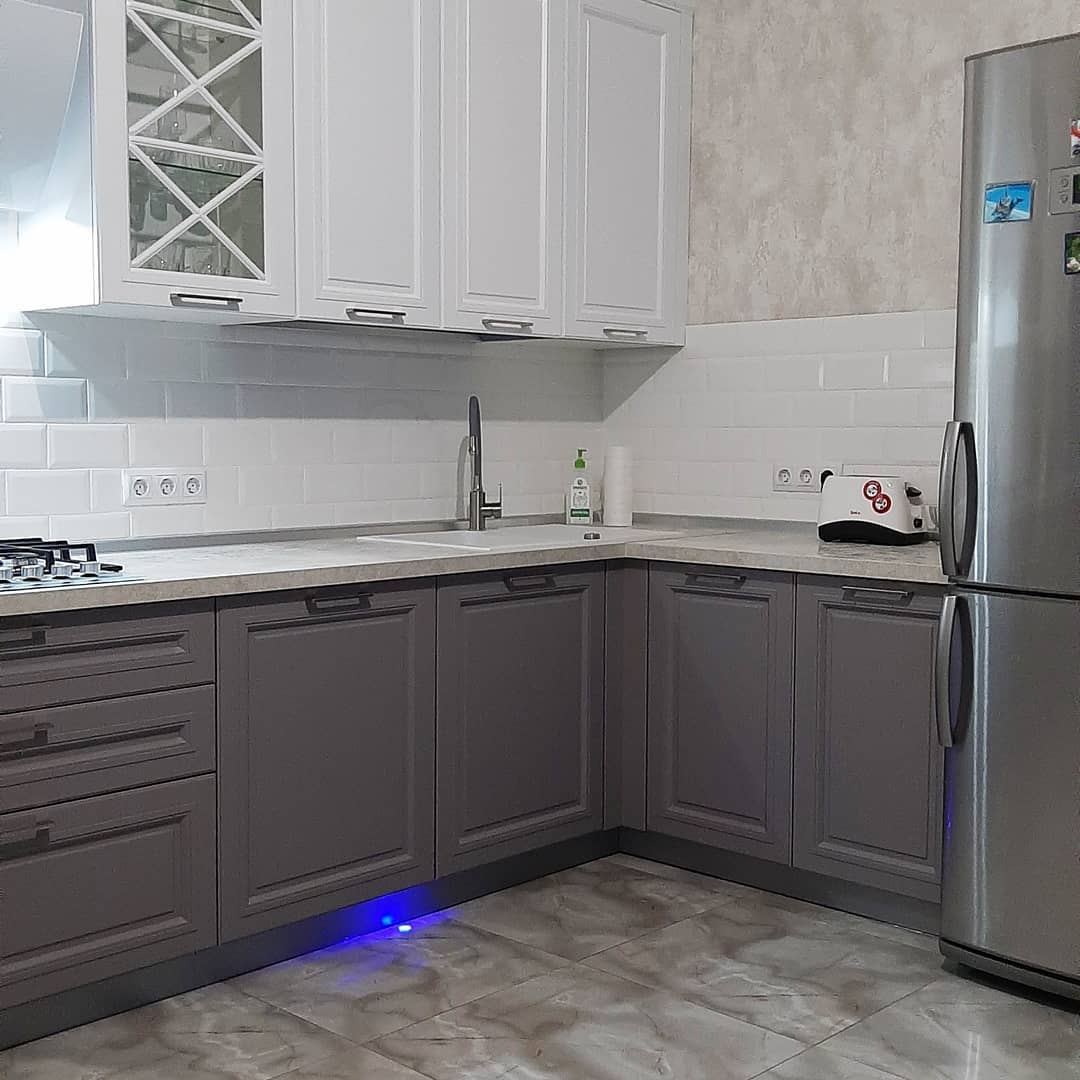 Угловая комбинированная кухня из крашеного фрезерованного МДФ