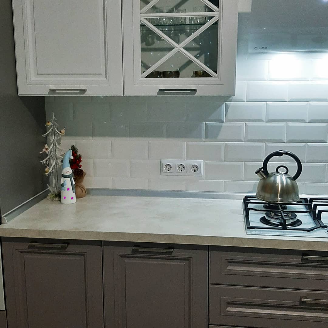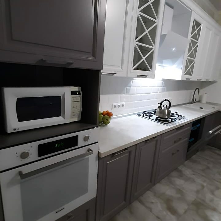 Комбинированные фасады из МДФ. Ширина кухни 170 см.
