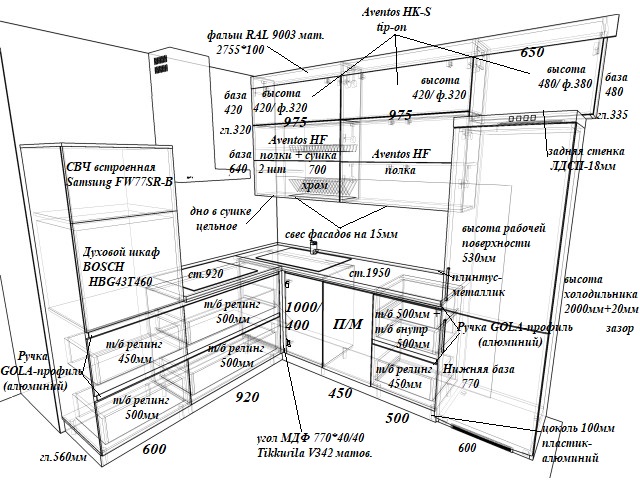 Ручки: верх без ручек, низ GOLA-профиль (алюминий)