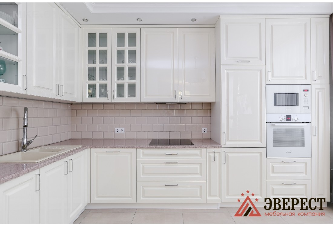 Угловая кухня в классическом стиле из крашенного МДФ