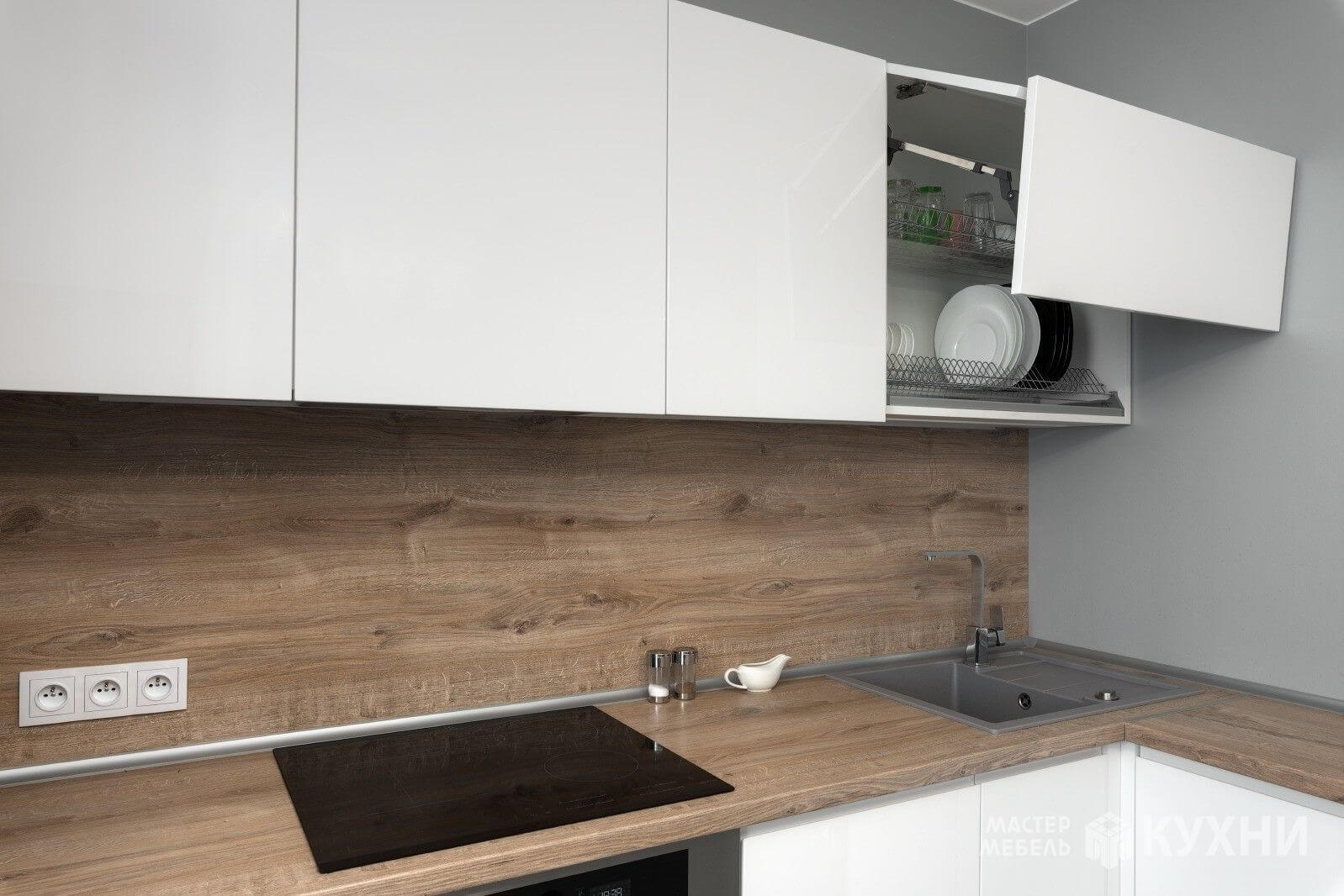 Современная кухня из МДФ. Удлиненные верхние шкафы.