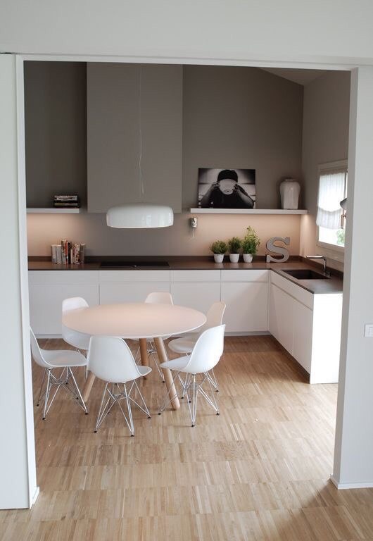 Современный кухонный гарнитур из ДСП в скандинавском стиле.