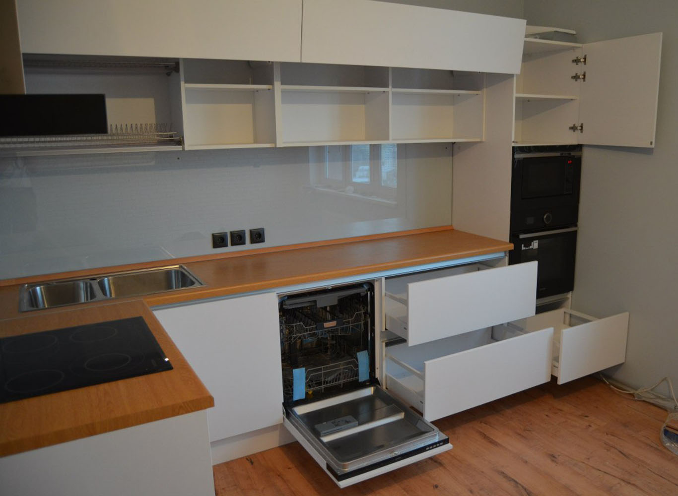 Угловая кухня белая с фасадами из ЛДСП