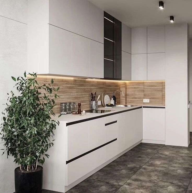 Современные кухни из МДФ и ЛДСП, пластика, металла, закаленного стекла.