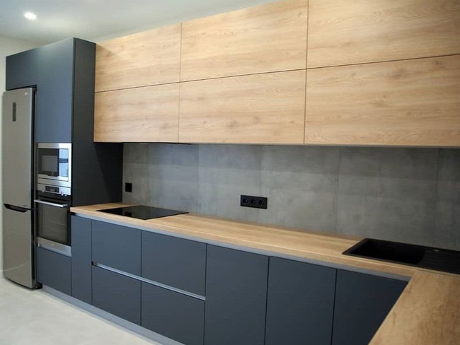 Контрастное сочетание цветов, множество шкафчиков для хранения, ниши для техники, удобная фурнитура.
