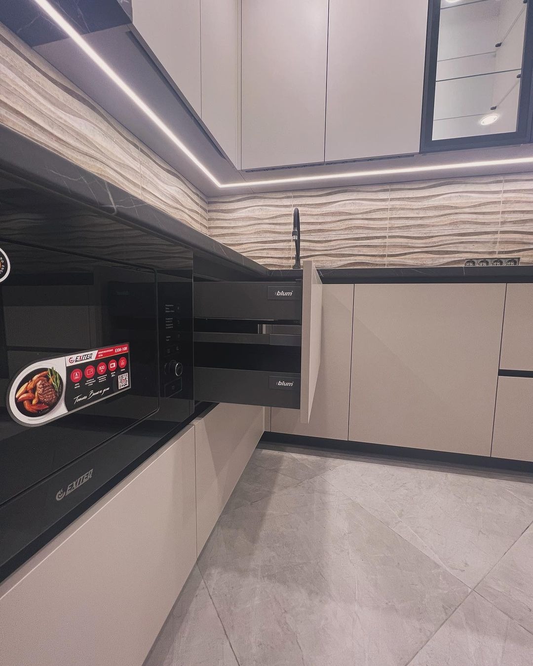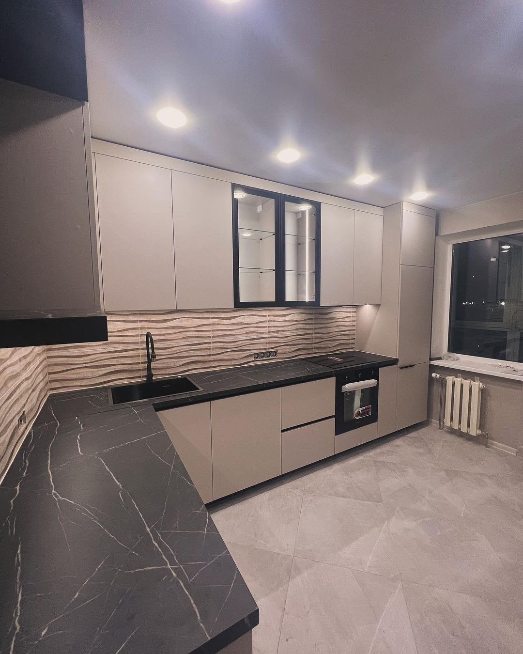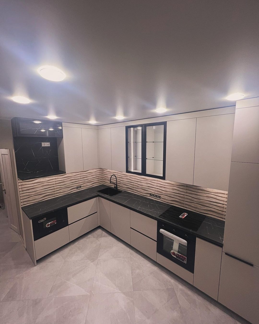 Современная кухня со столешницей и фурнитурой в комплекте.