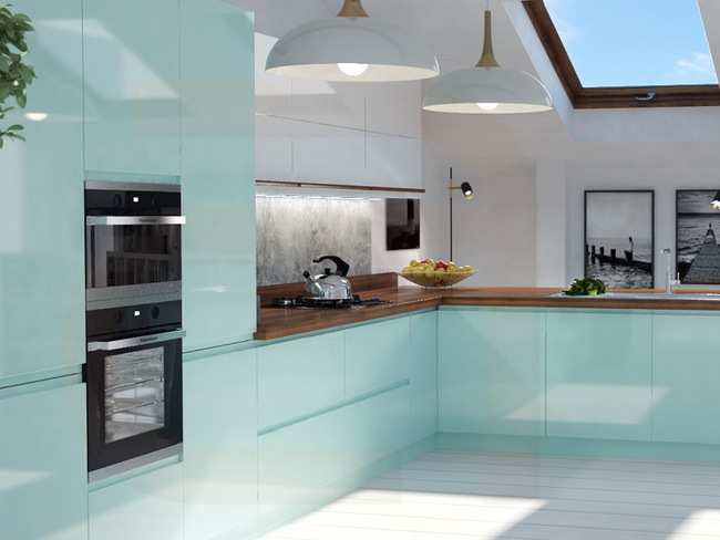 Вместительные фасады, ниши для встраиваемой техники, оригинальный фартук.