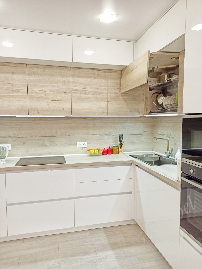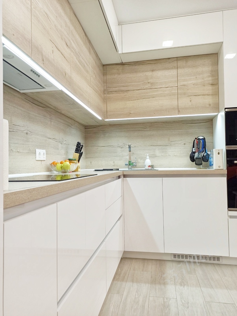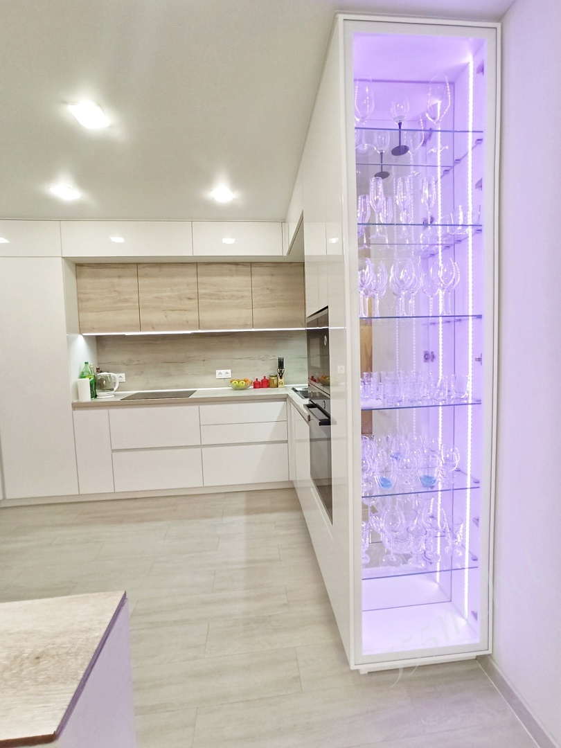 Стильная кухня, без ручек , в модных трендовых цветовых гаммах.