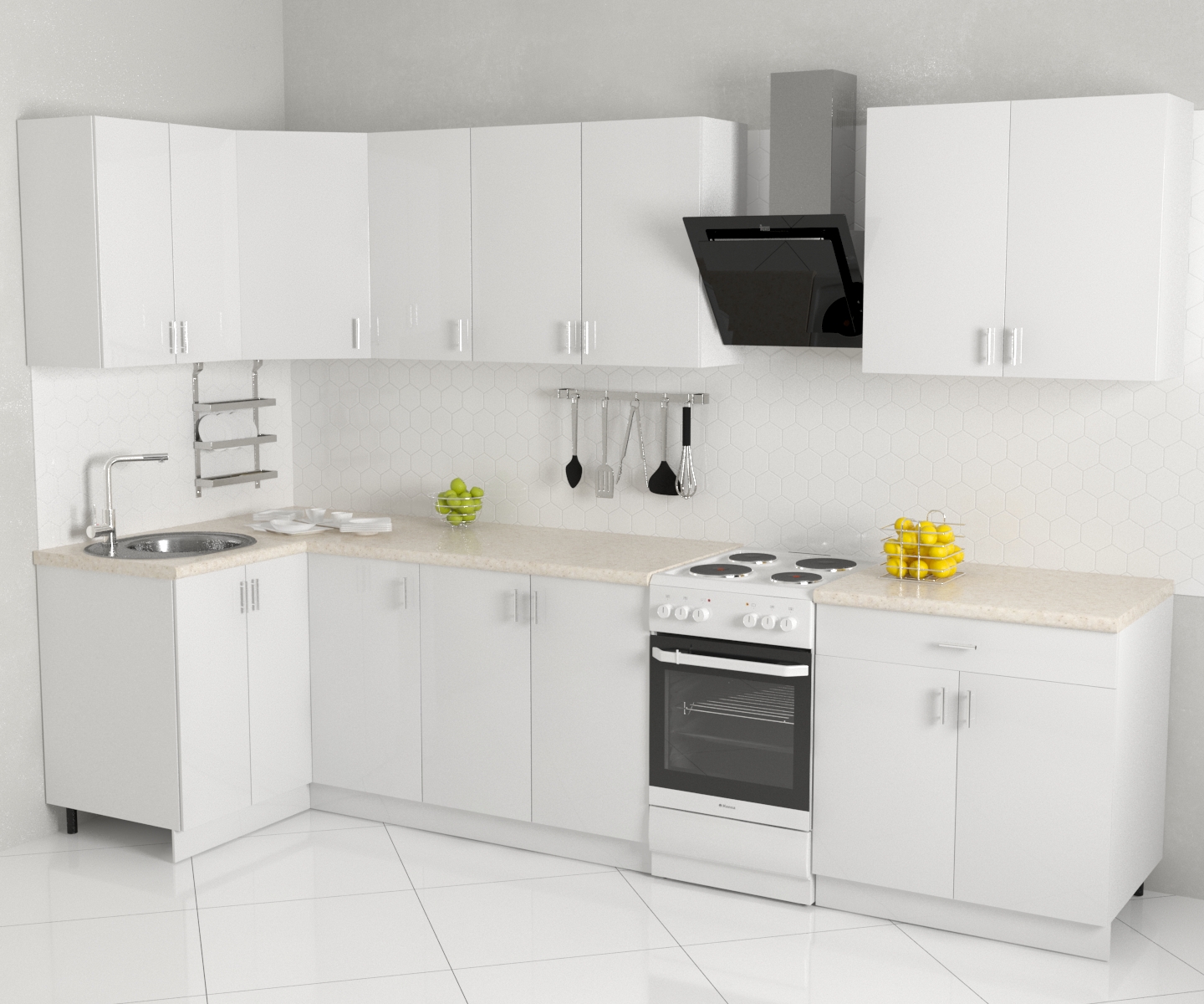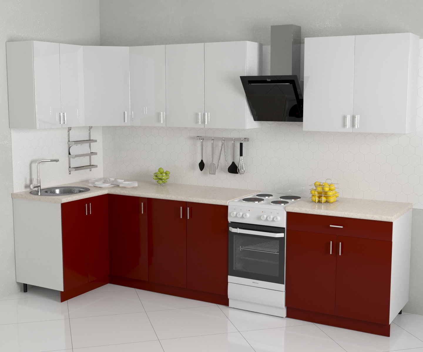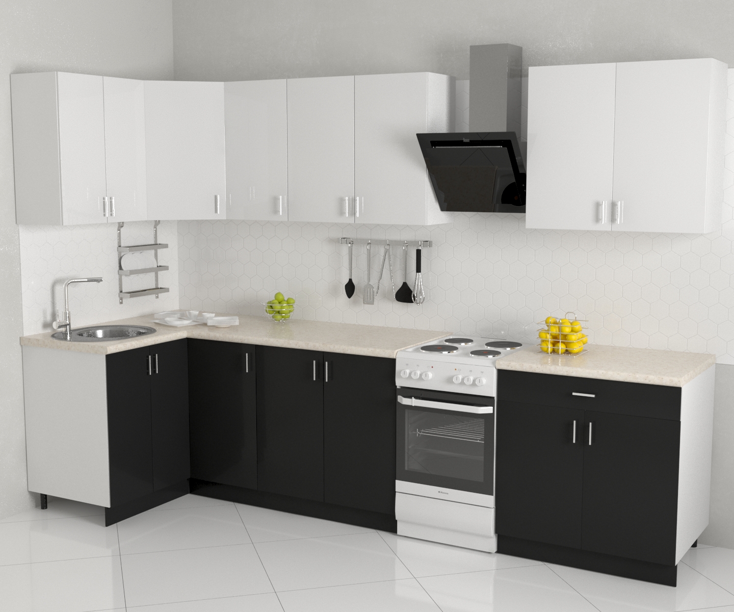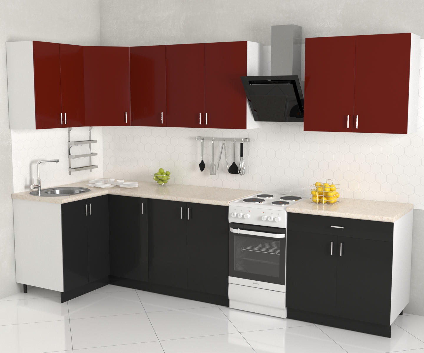 Угловая кухня эконом в контрастном декоре