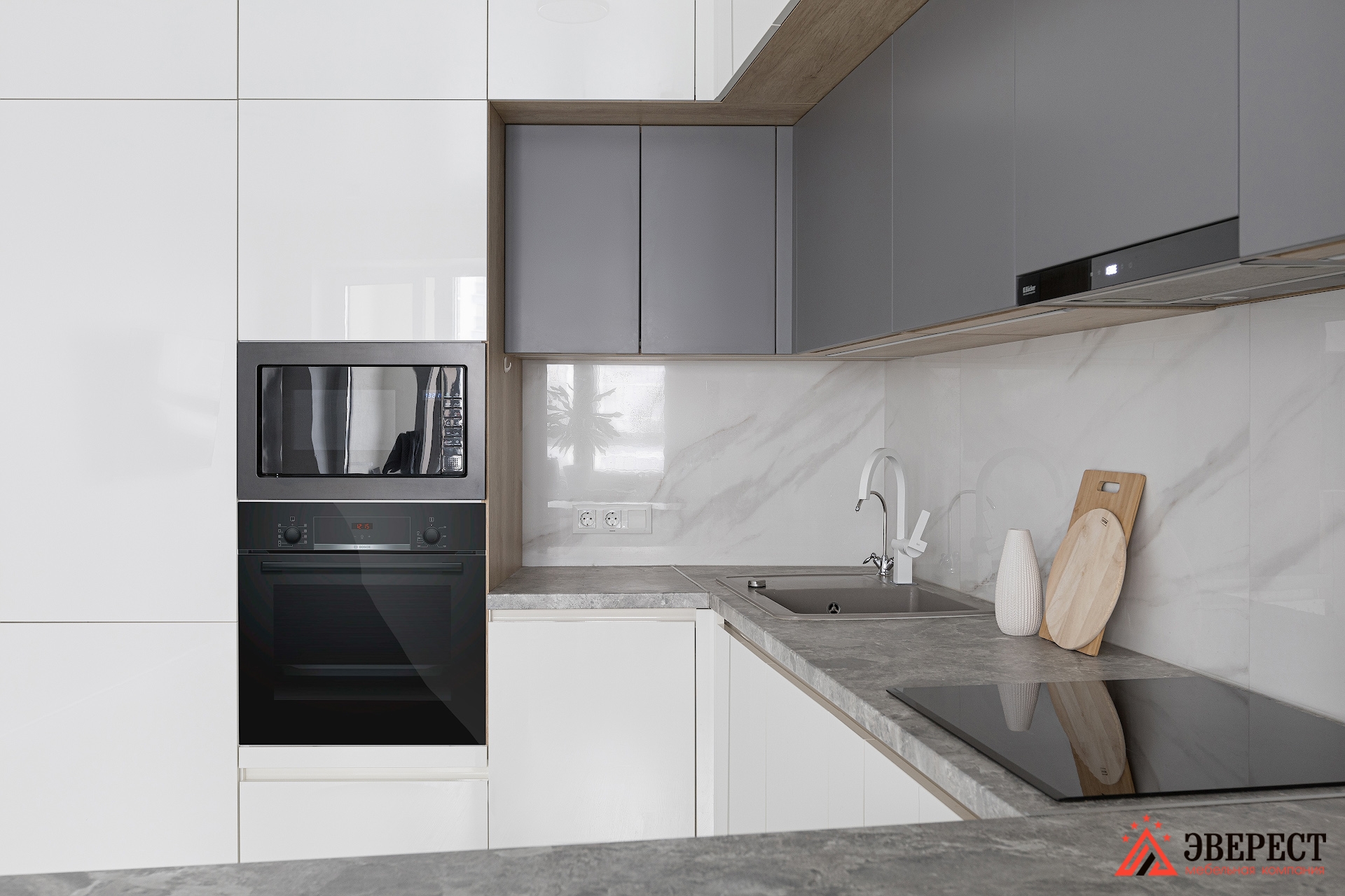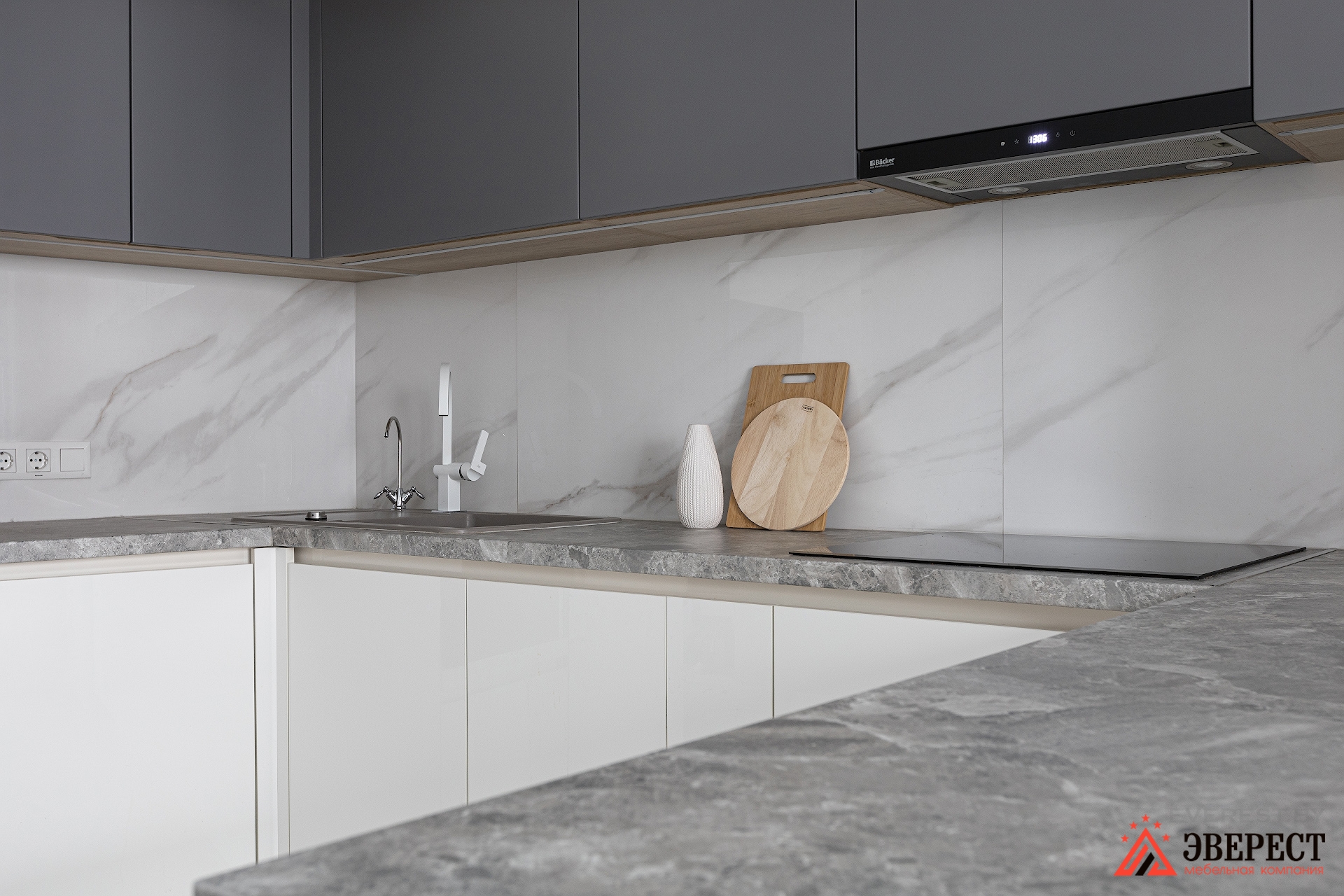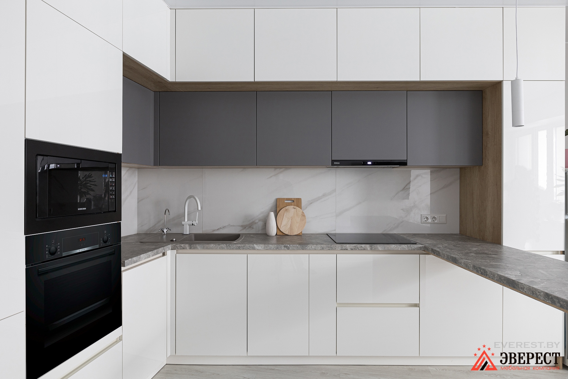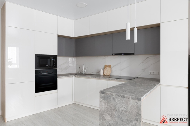 Современный скандинавский дизайн. Ширина кухни 240 см.