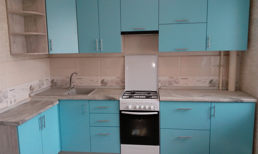 Готовый гарнитур с комбинированными фасадами из ЛДСП. Ширина кухни 150 см.