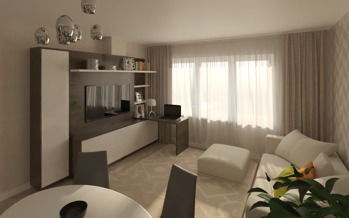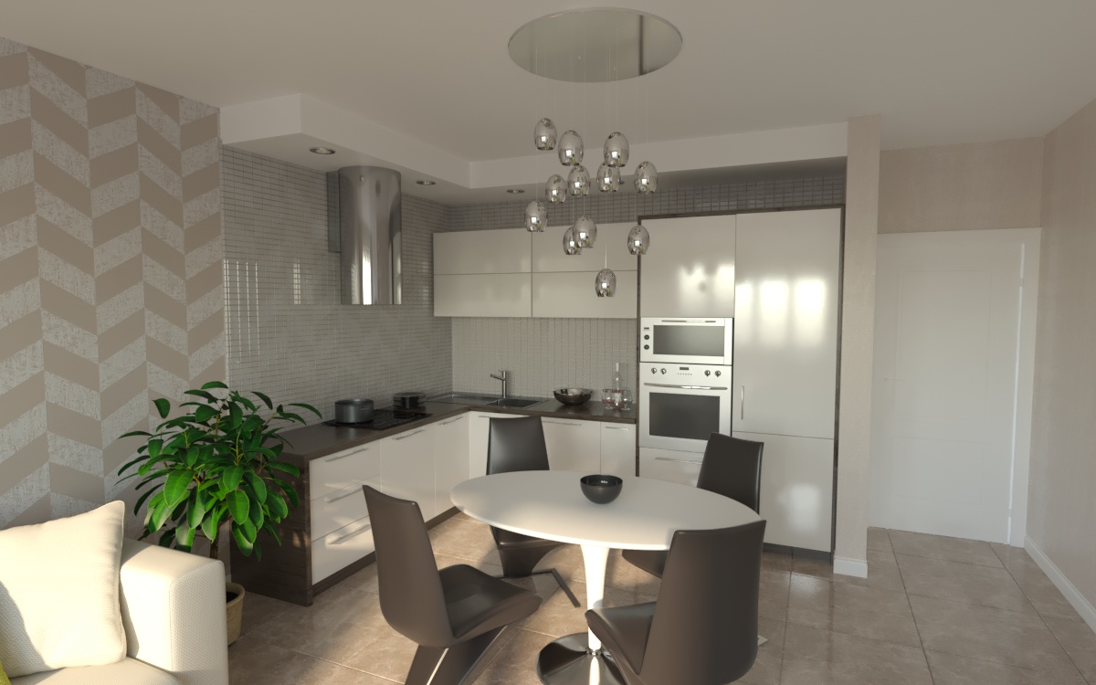 Мини-кухню можно дополнить зоной приема пищи со столами, барной стойкой, стульями, диванами.