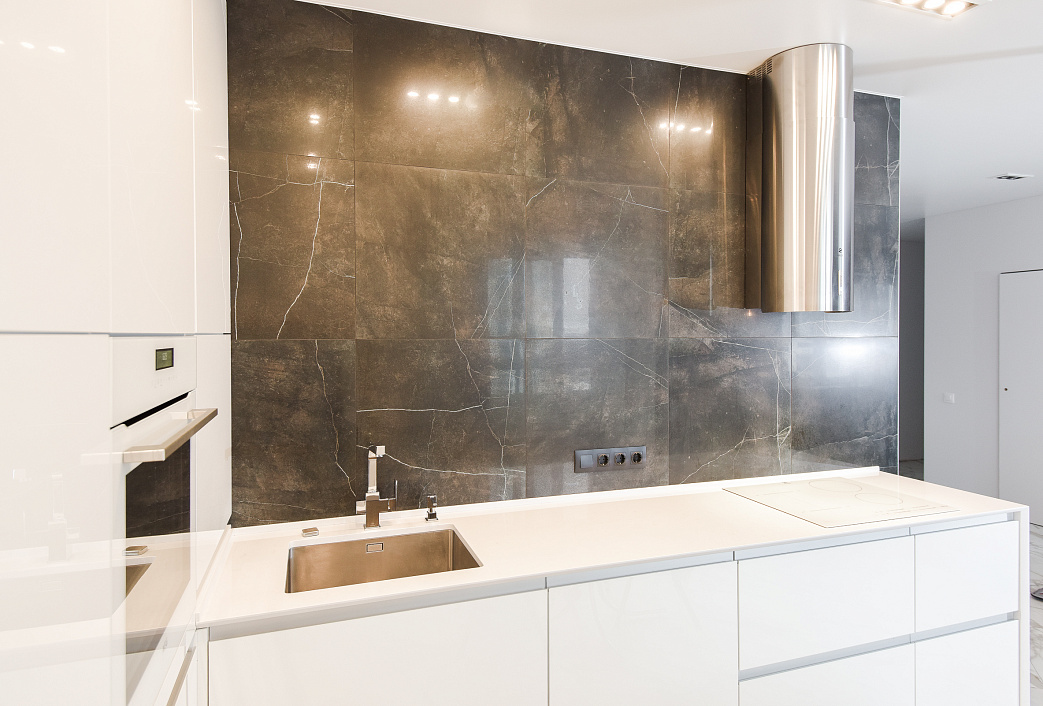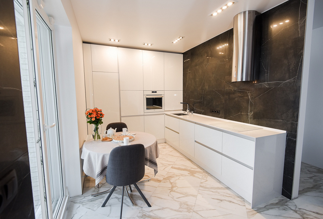 П-образная кухня из ЛДСП Egger с черной столешницей