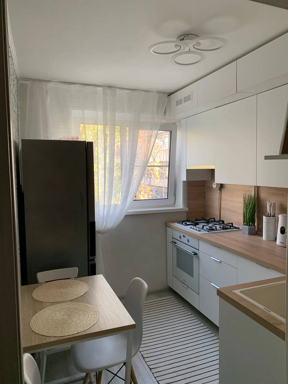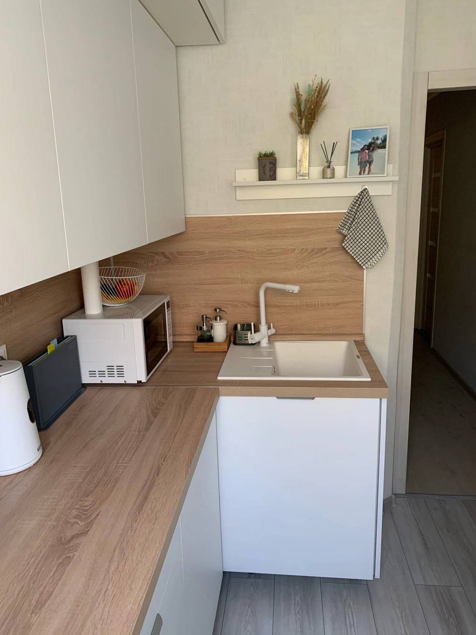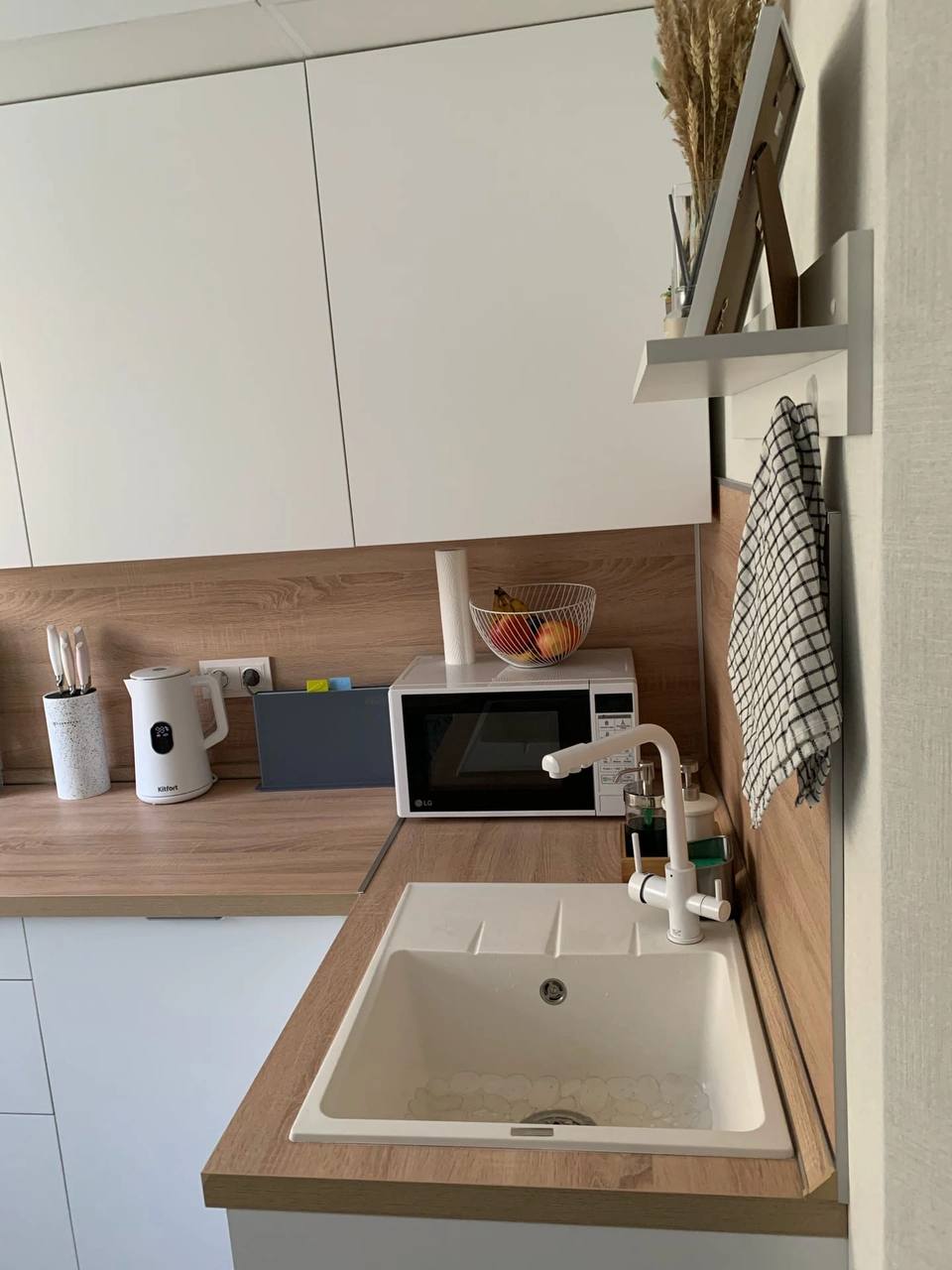 Эта лаконичная кухня порадует хозяев неприхотливым уходом и качественной и удобной фурнитурой.