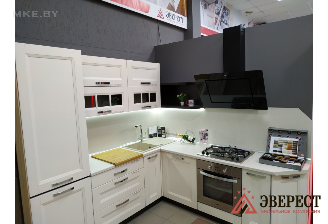 Угловая кухня выполнена из качественного массива ясеня. Модель оснащается вместительным пеналом, столешницей постформинг. Выдвижные ящики и петли с доводчиками способствуют плавному закрытию ящиков. Верхние ящики открываются по отдельности, установлены современные подъемные механизмы.