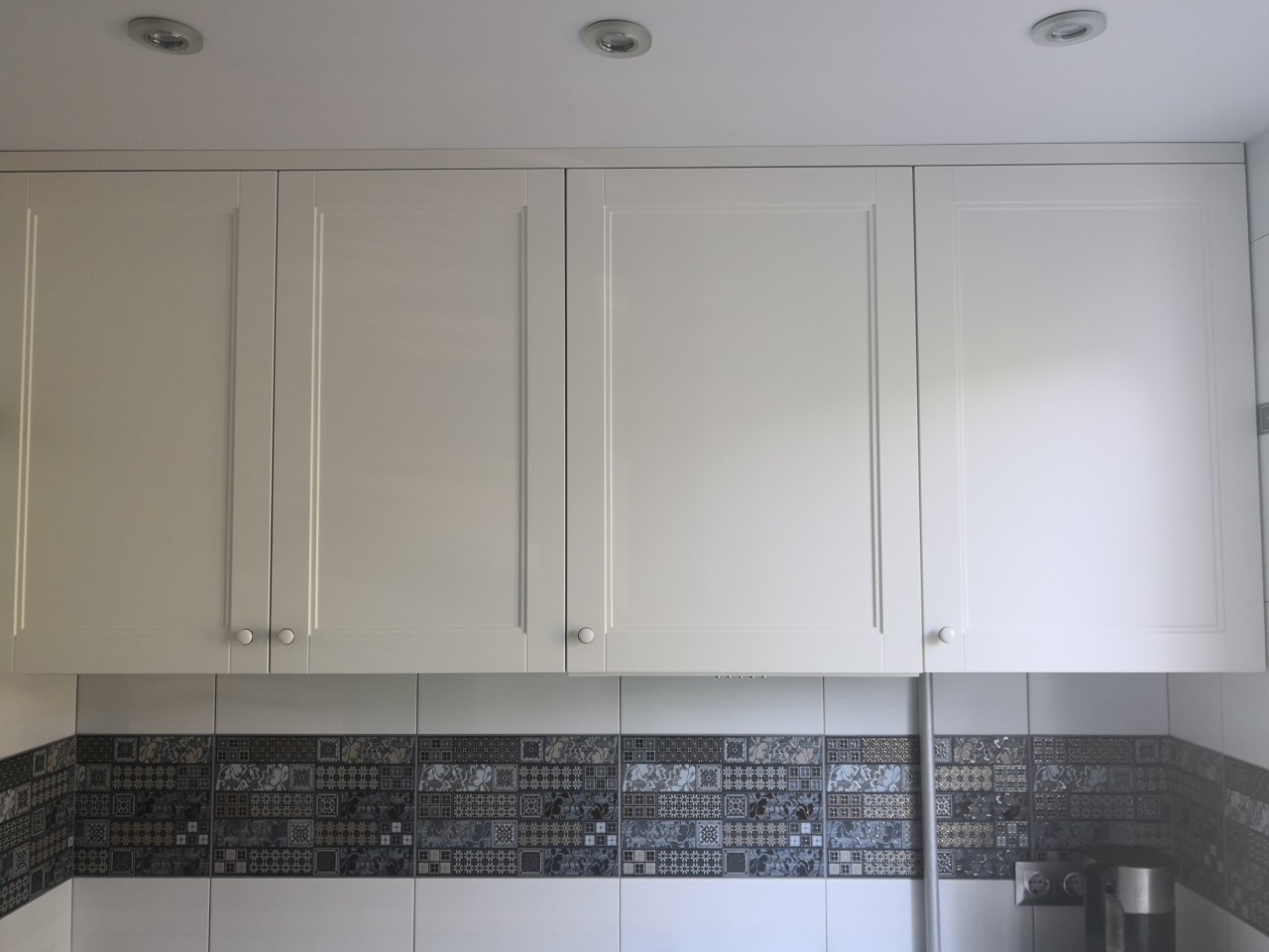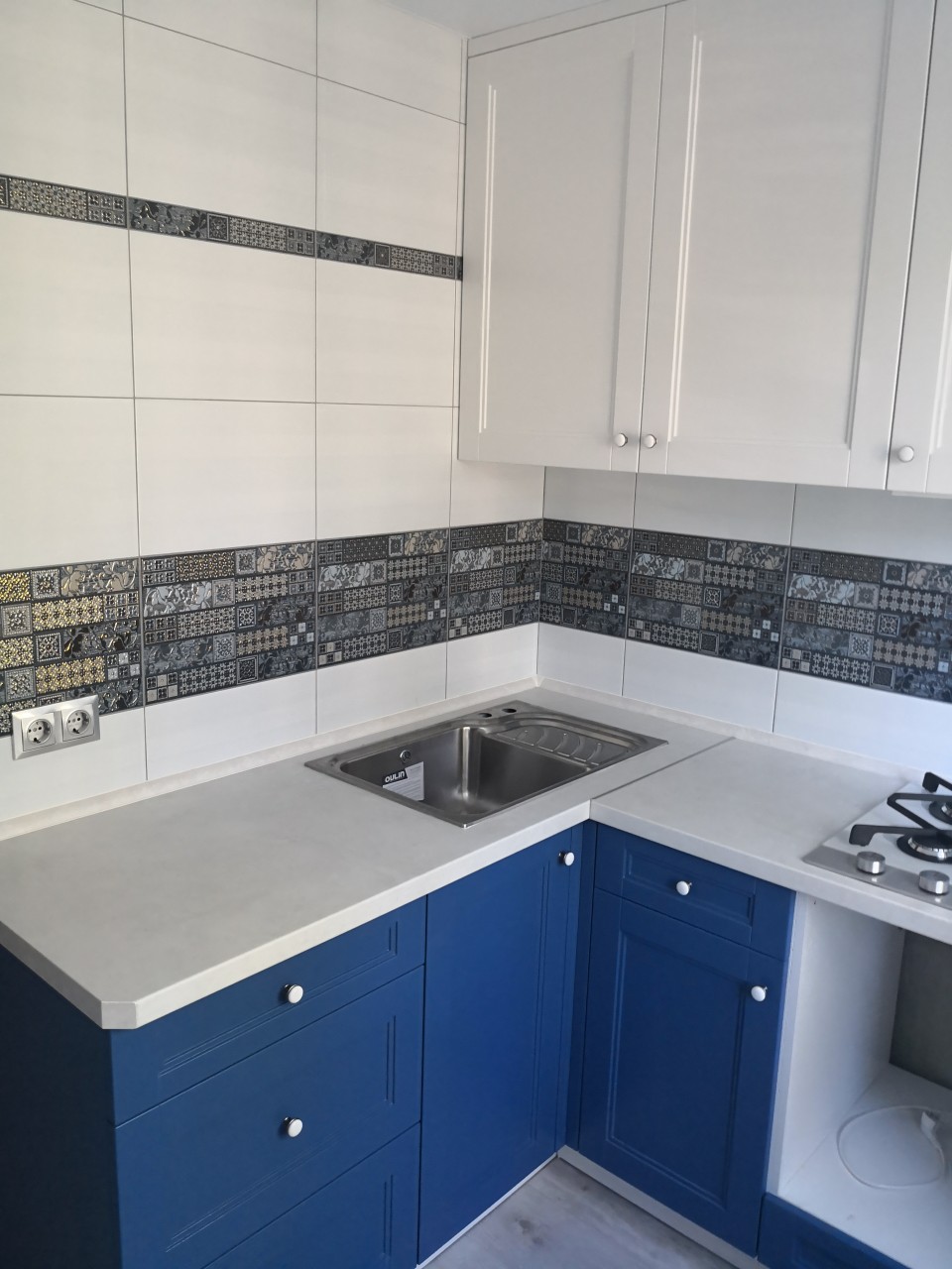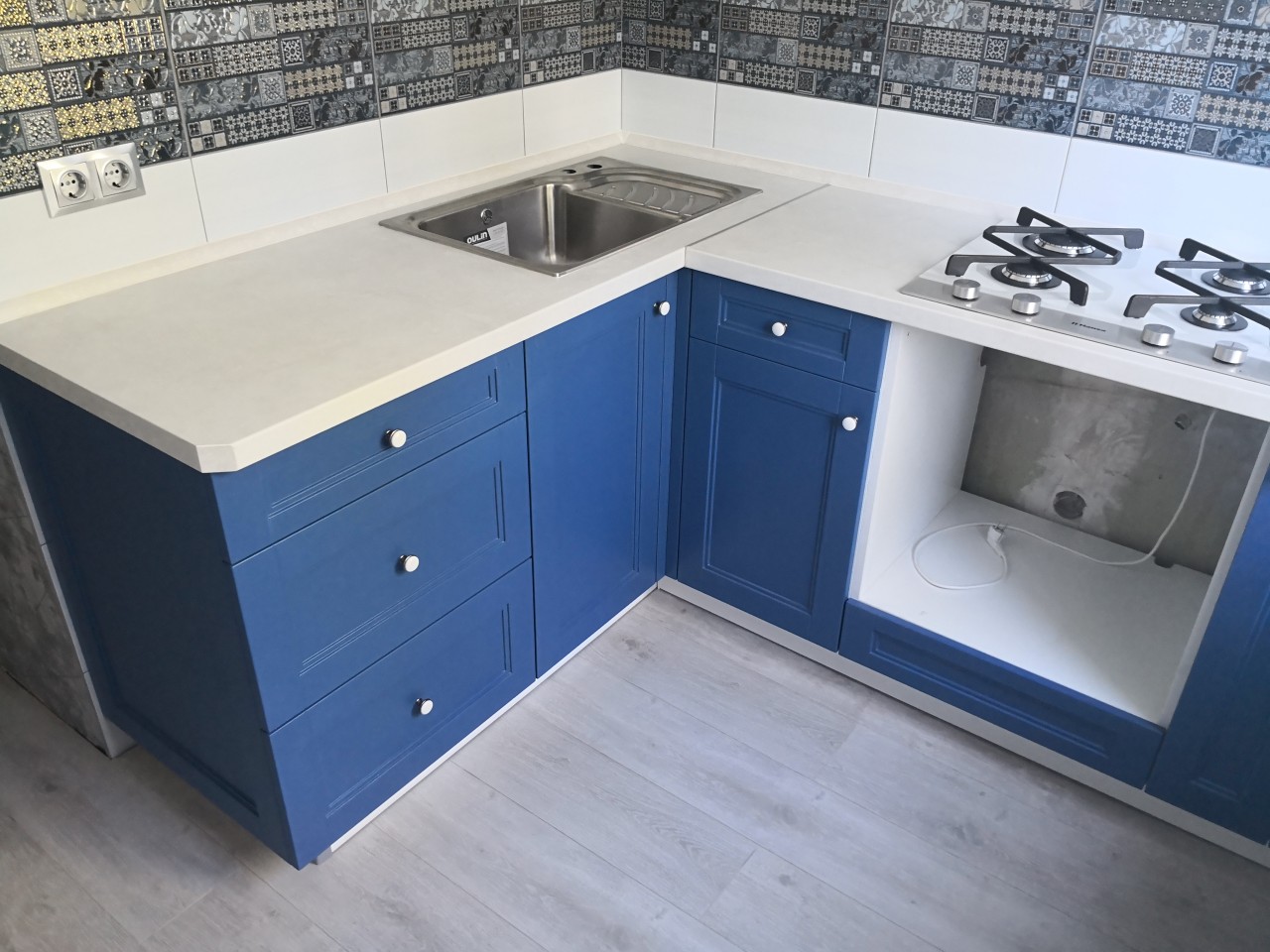 Прямая кухня «Яна СН-114» МДФ 1.4 м, белый алмаз/небесная лазурь