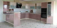 Верхние фасады со стеклом. Ширина кухни 160 см.