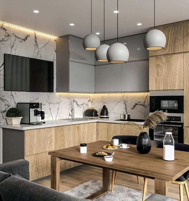 Угловая кухня из шпона