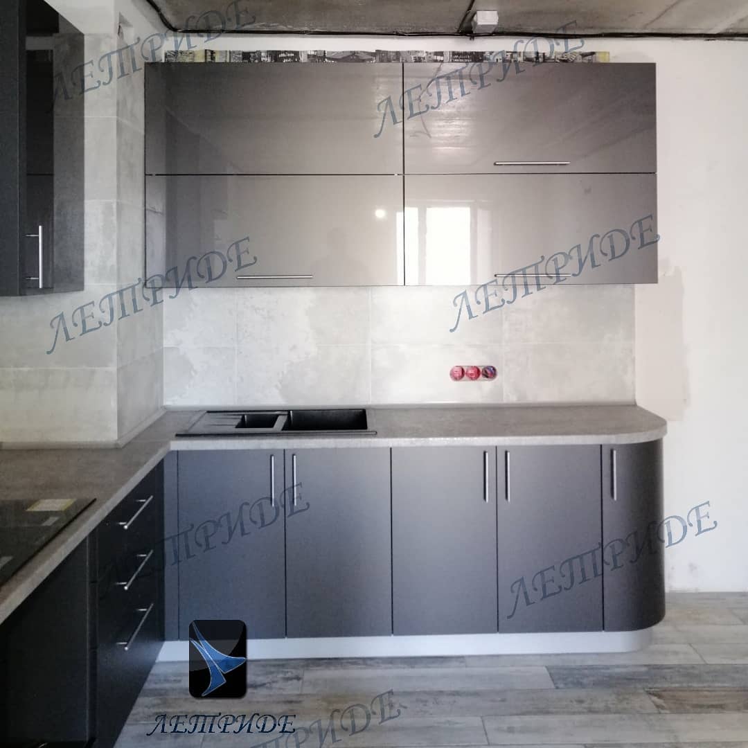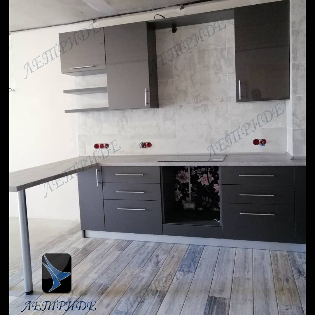 Материал фасада и корпуса: ЛДСП 16 мм. Ширина кухни 230 см.