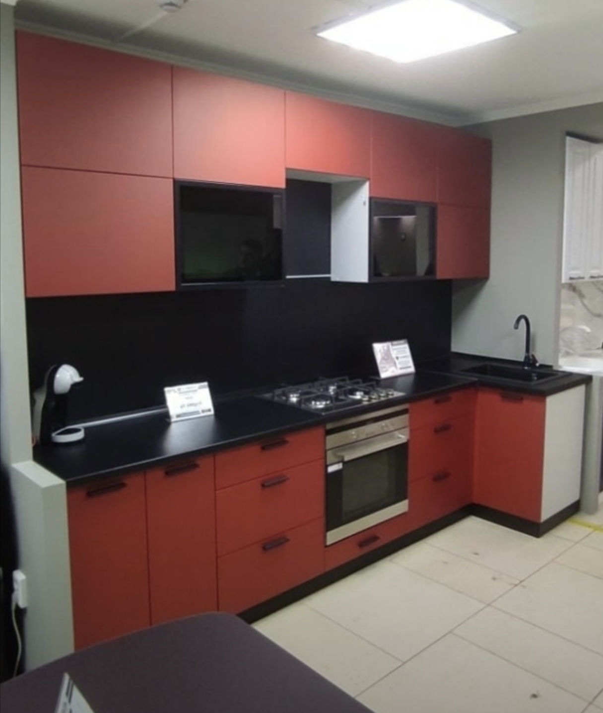 Угловая кухня красного цвета