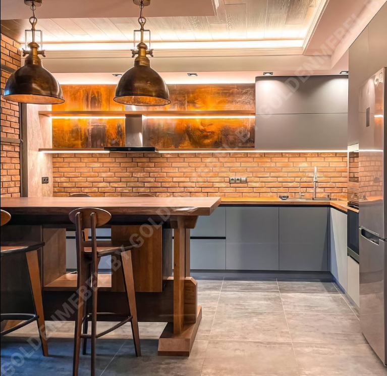 Традиционные ручки отсутствуют. Комбинированные фасады.