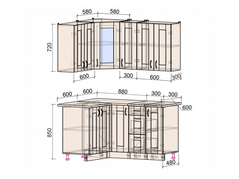 Внимание! Сушильная фурнитура в комплект не входит! Дополнительно кухонный гарнитур можно доукомплектовать шкафом под вытяжку (шириной 50 см или 60 см) и под встраиваемую духовку.