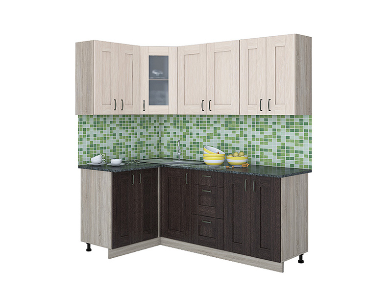 Угловая кухня «Мила Хольц» 1.2х2.0 м, дуб венге-дуб молочный