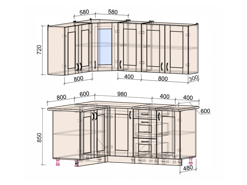 Внимание! Сушильная фурнитура в комплект не входит! Дополнительно кухонный гарнитур можно доукомплектовать шкафом под вытяжку (шириной 50 см или 60 см) и под встраиваемую духовку.