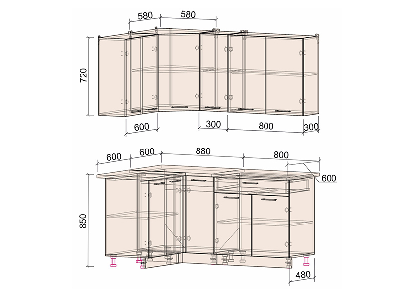 Внимание! Сушильная фурнитура в комплект не входит! Дополнительно кухонный гарнитур можно доукомплектовать шкафом под вытяжку (шириной 50 см или 60 см) и под встраиваемую духовку.