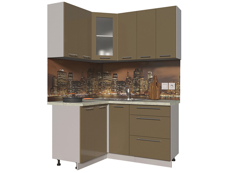 Угловая кухня «Мила Пластик» 1.2х1.5 м, капучино