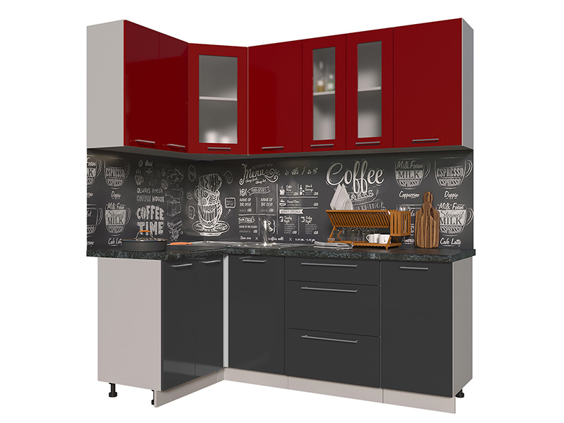Угловая кухня «Мила Пластик» 1.2х2.0 м, антрацит-красный