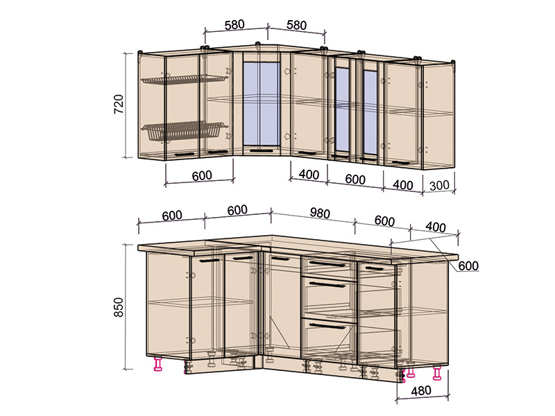 Внимание! Кухонная мойка в комплектацию не входит и покупается отдельно! Дополнительно кухонный гарнитур можно доукомплектовать шкафом-пеналом шириной 60 см или иными модулями из коллекции «Мила Пластик».