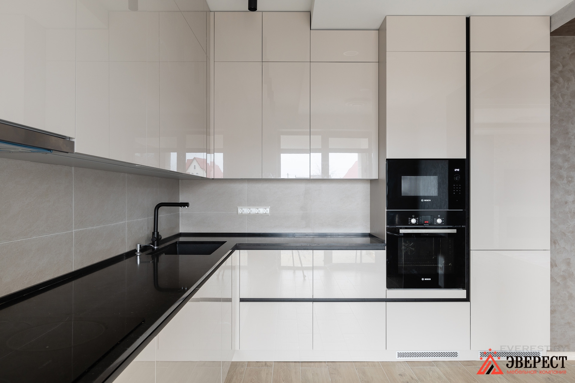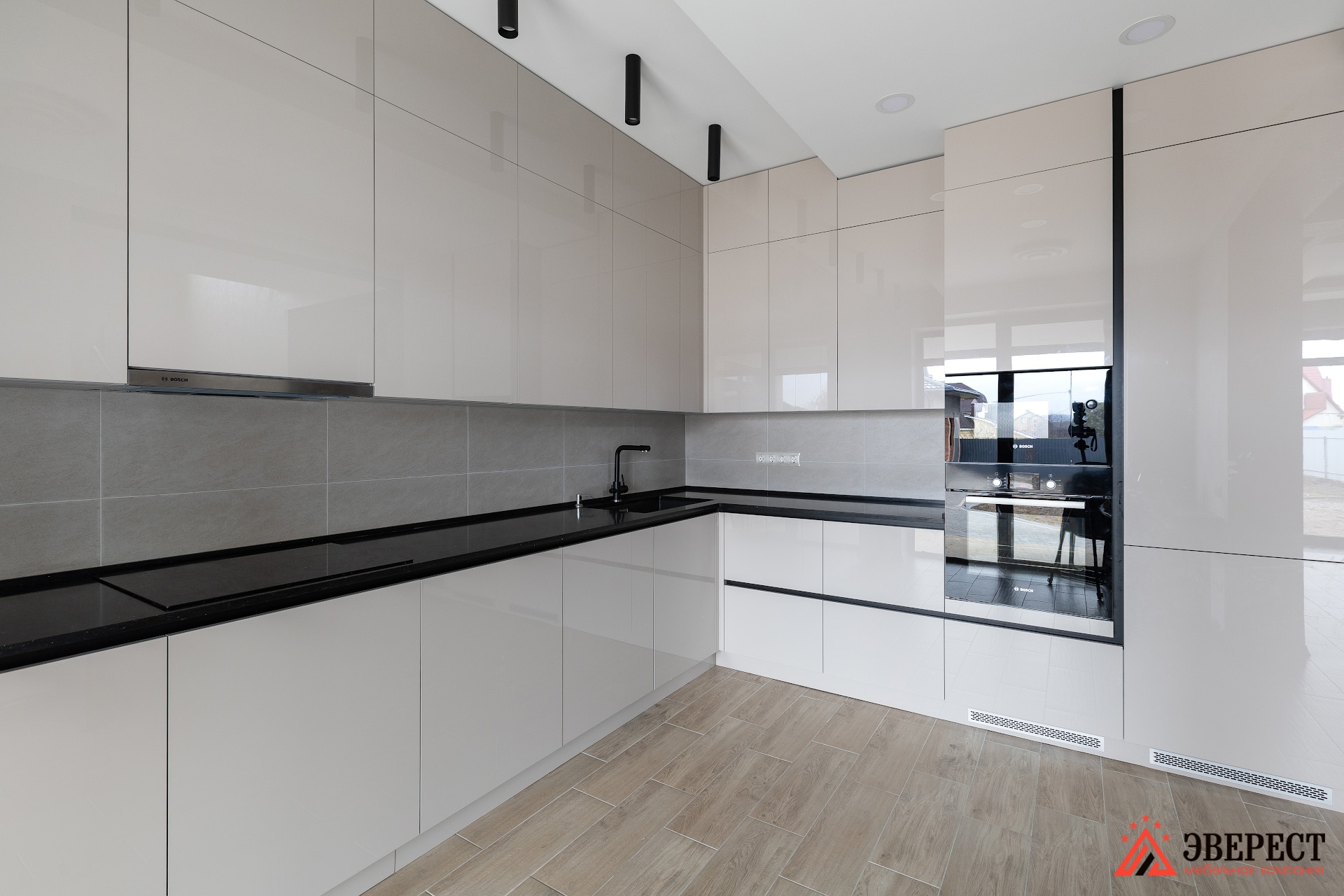 код 105772Глянцевые фасады без ручек. Стильный дизайн. Подсветка рабочей зоны.