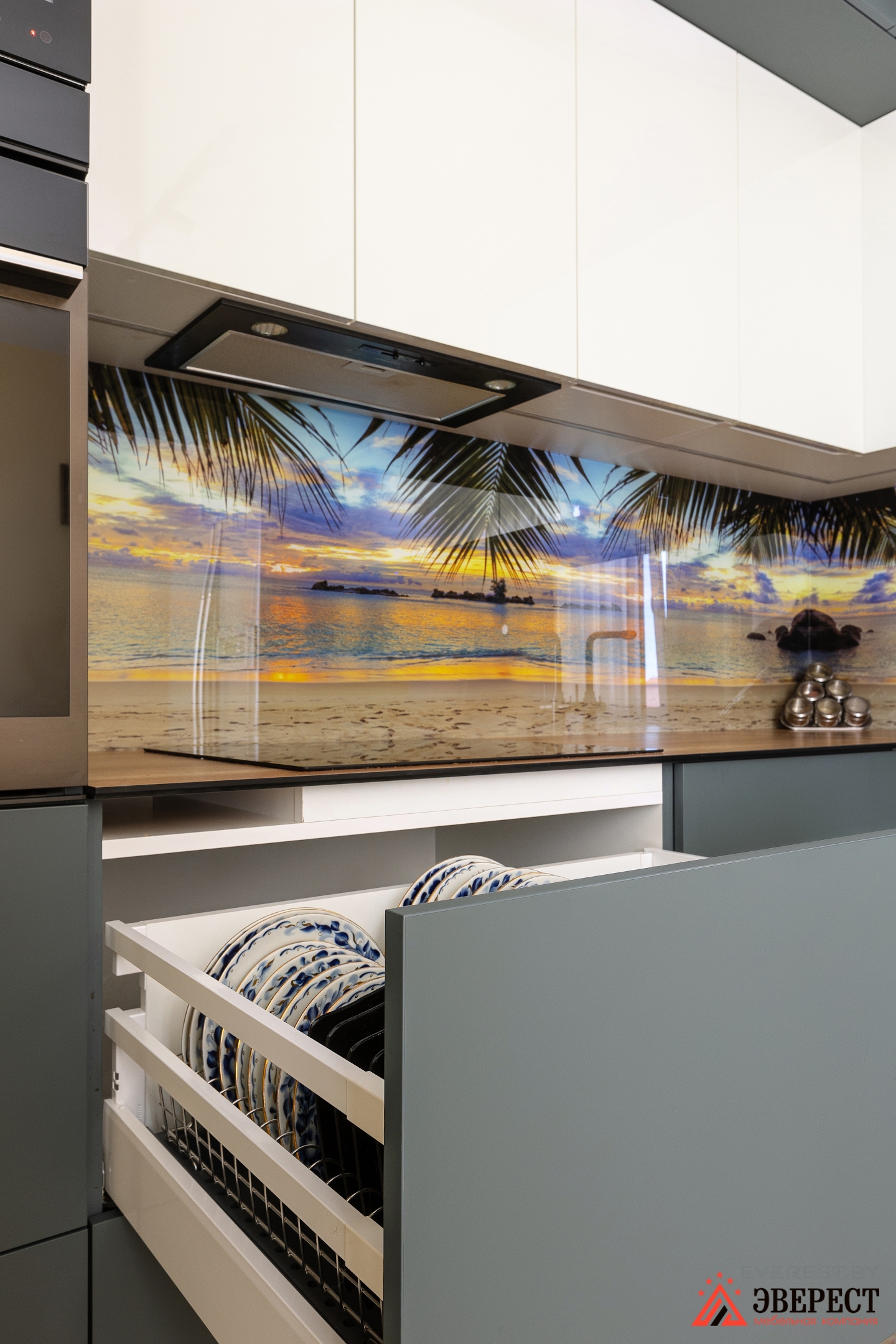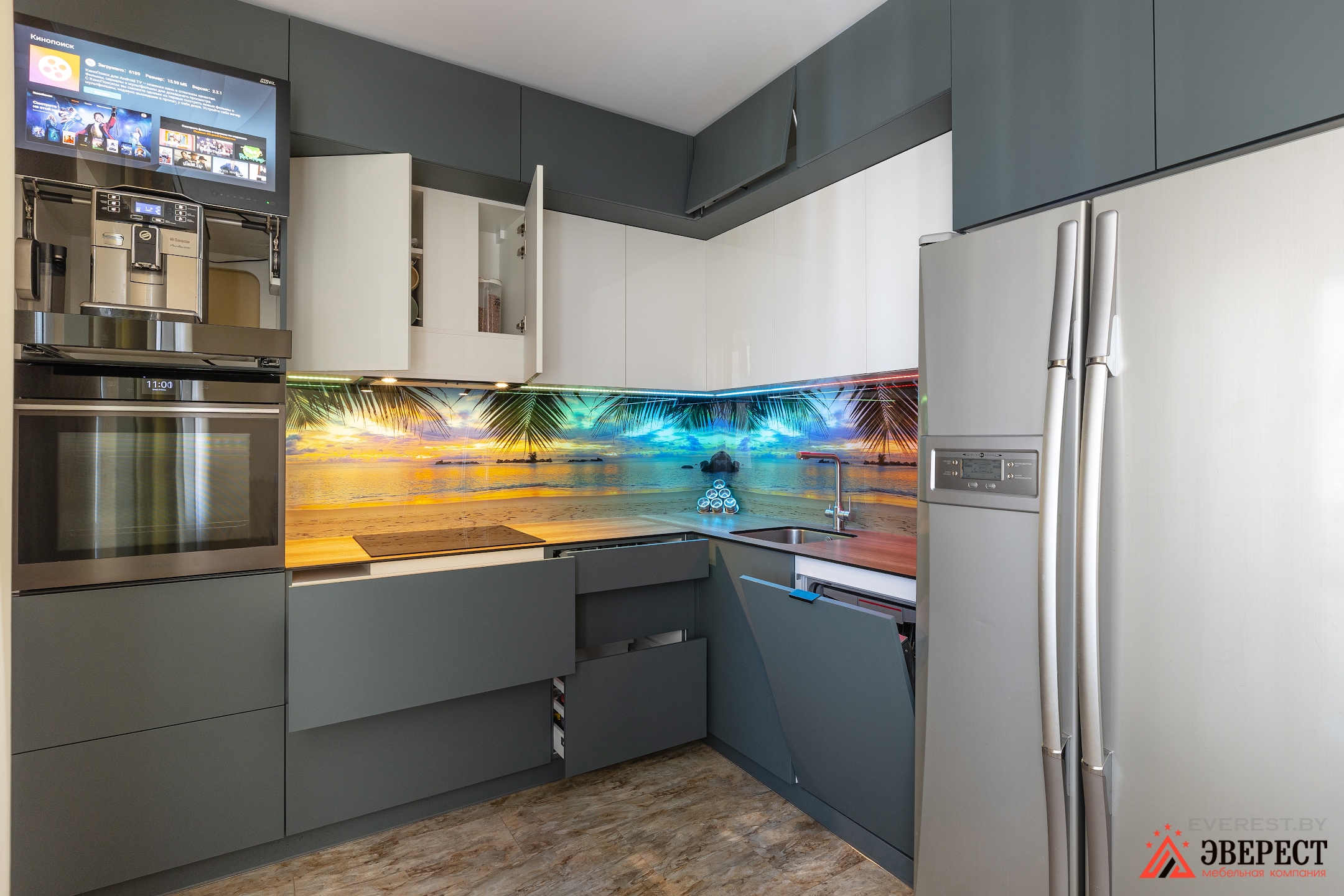 Фасады выполнены из итальянского пластика Fenix 0750 и Акрил S-line Австрийского производства в белом цвете
