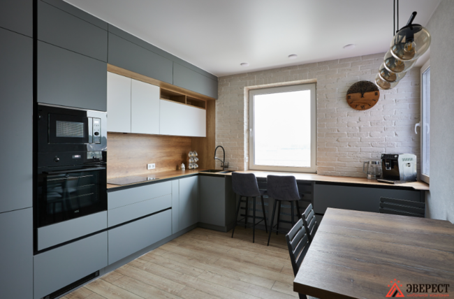 Кухонный гарнитур с глухими фасадами из матовой ЛДСП.
