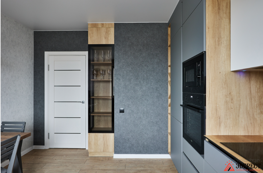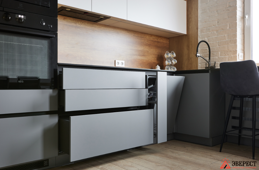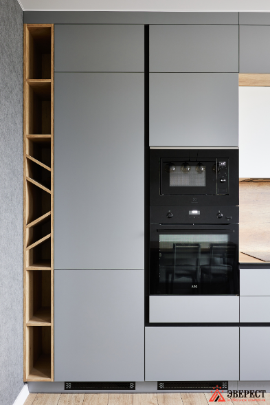 Фасады выполнены из австрийского материала Акрил S-line на основе МДФ