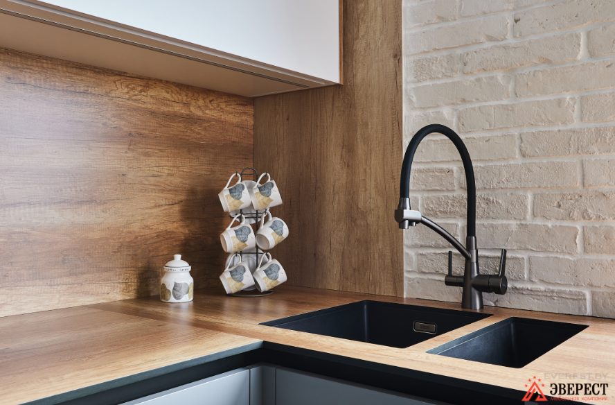 Столешница: JUAN (Польша), цвет Серебряный Палацио. Фурнитура: Blum (Австрия).
