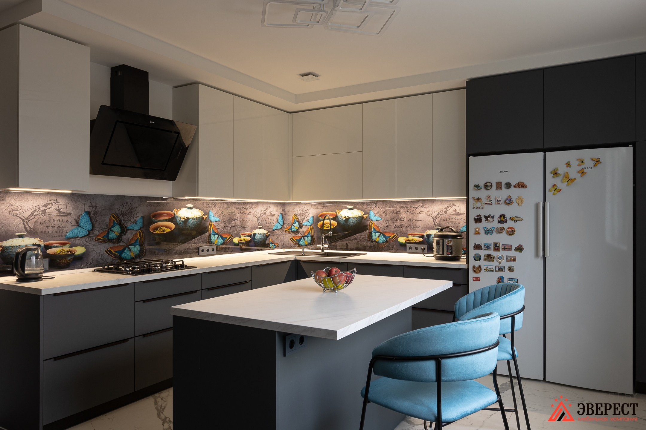 код 126577Фасады: пластик FENIX, акрил. Стеклянная скиналь с фотопечатью 6мм с закалкой.