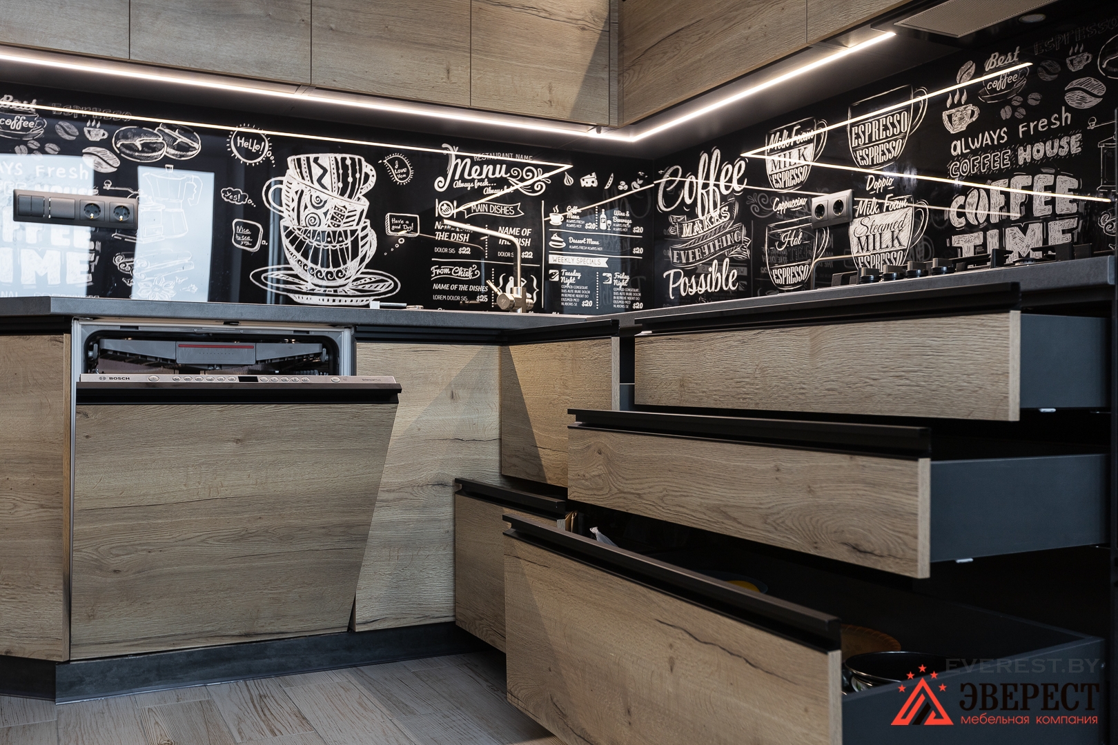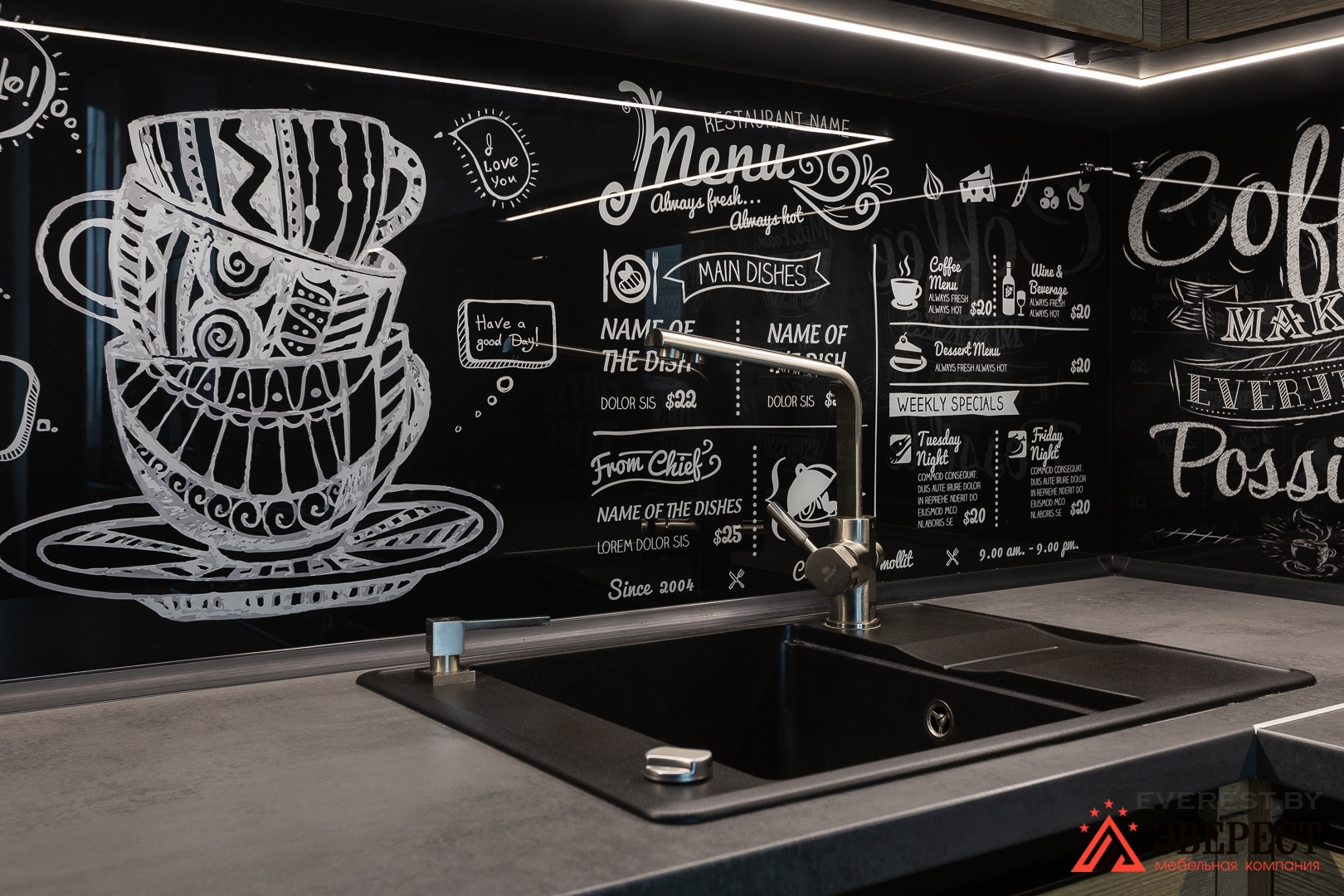 Материал: ЛДСП Egger. Скинали из закаленного стекла. Фасады без ручек.