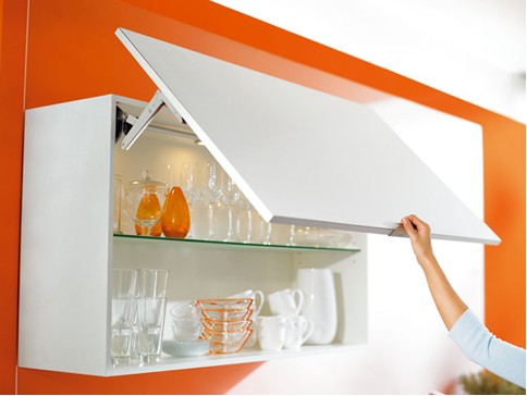Современный стиль. Глянцевые фасады с ручками в тон.