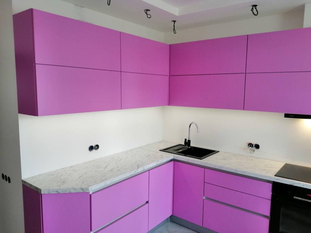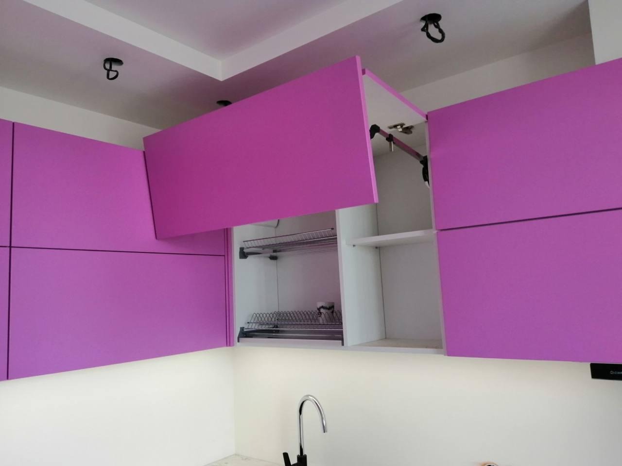 Современная кухня из МДФ. Удлиненные верхние шкафы.