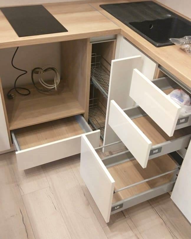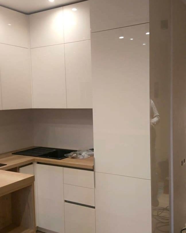 Фасады белого цвета. Столешницы - сонома.