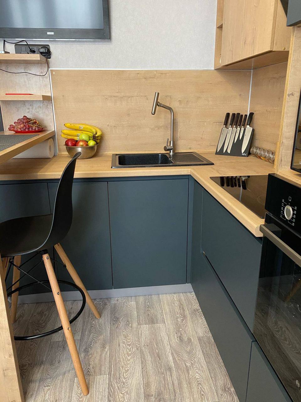 Угловая кухня 150х150 см со столешницей из постформинга.