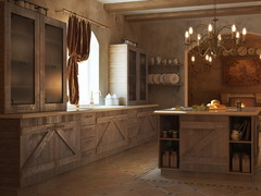 Материал фасада и корпуса: ЛДСП 16 мм. Ширина кухни 240 см.