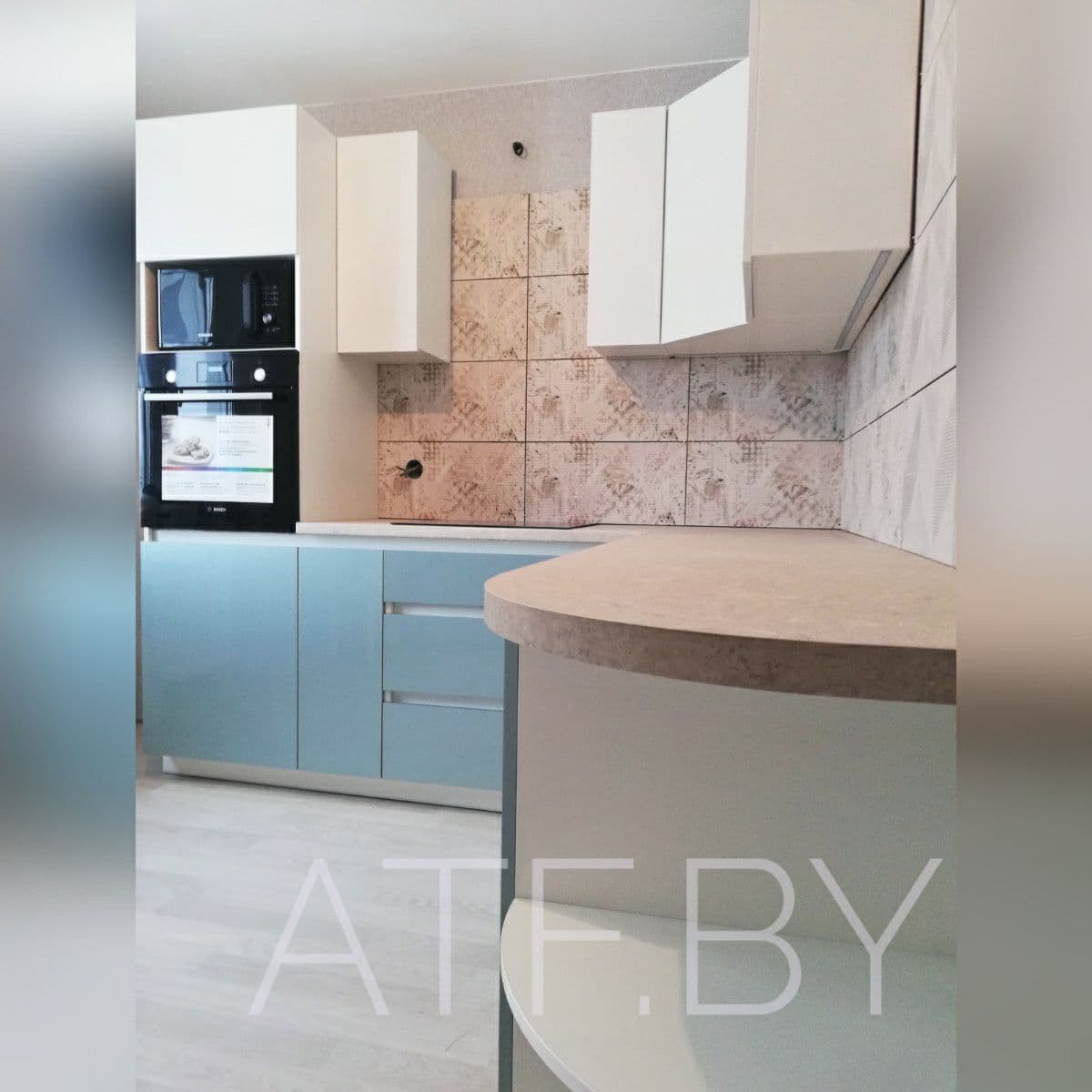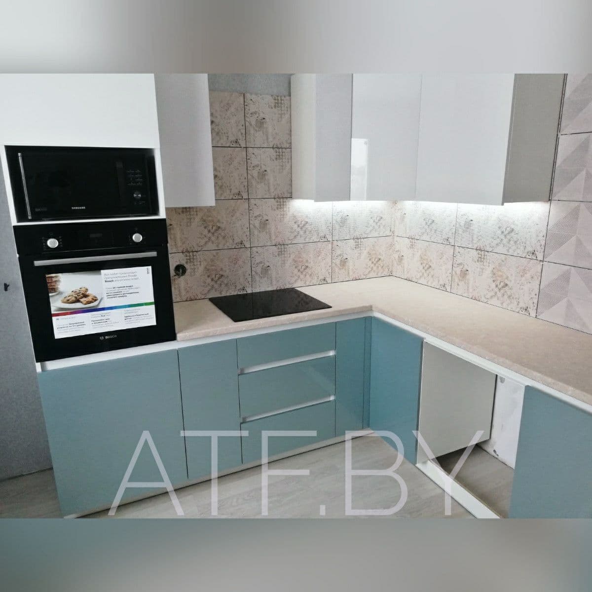 Кухня длиной 140 см. Стильное сочетание цветов фасадов.