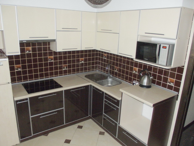 Угловая кухня с фасадами из пластика с изысканным дизайном