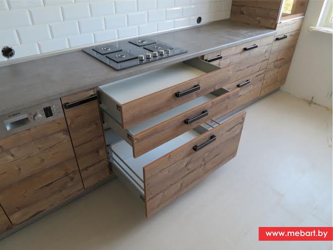 Линейная кухня из качественной ЛДСП с удобной и прочной фурнитурой.