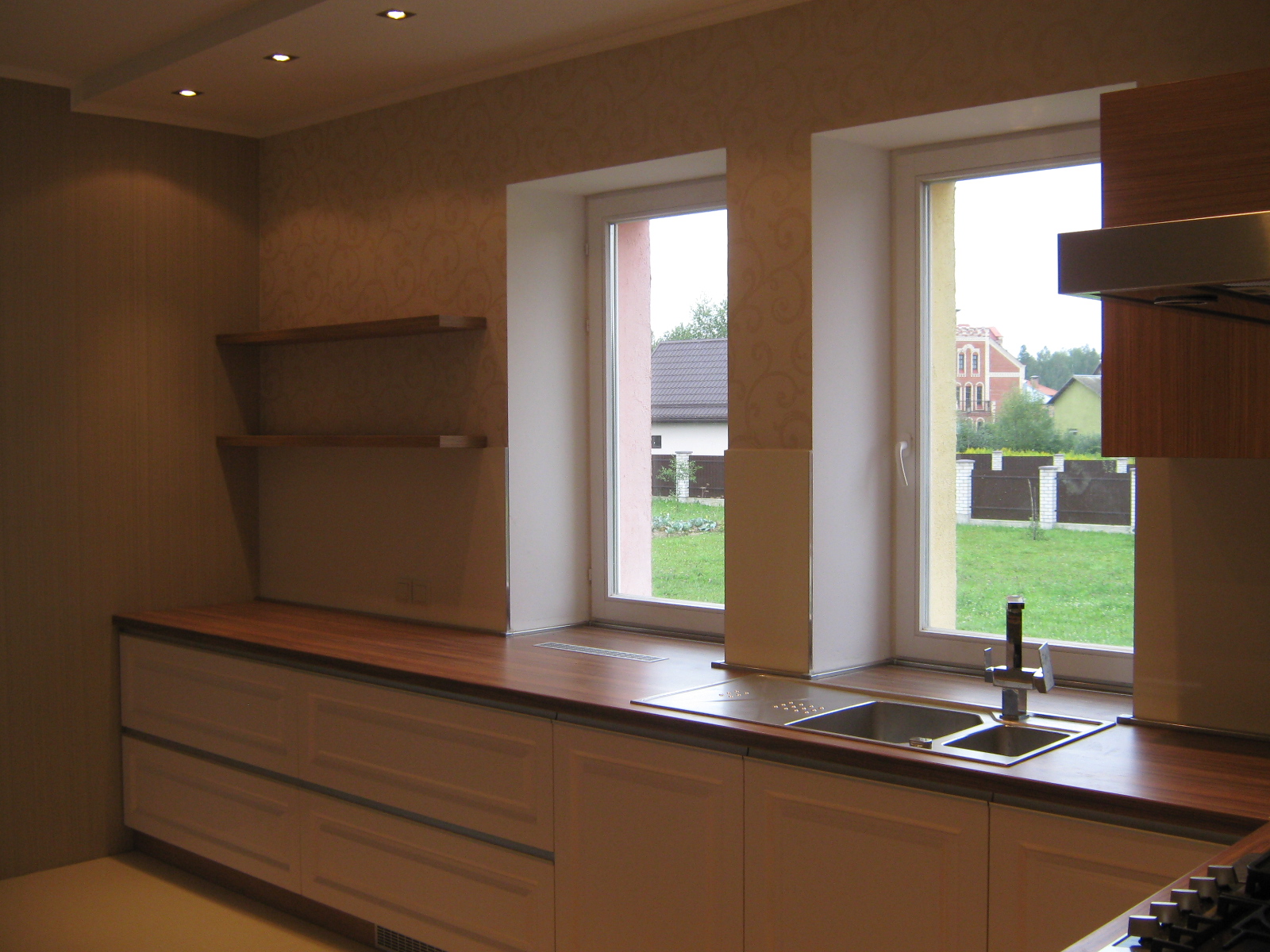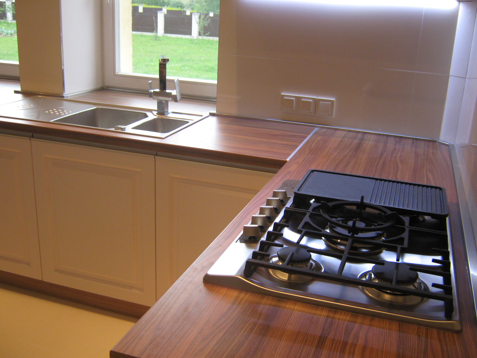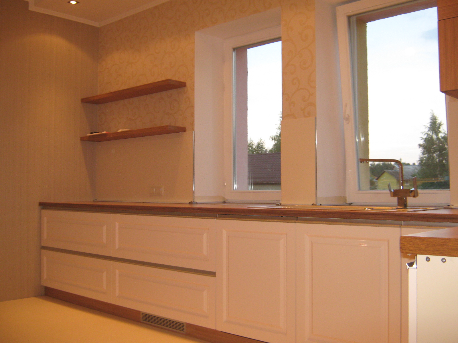 Материал фасада и корпуса: ЛДСП 16 мм. Ширина кухни 220 см.