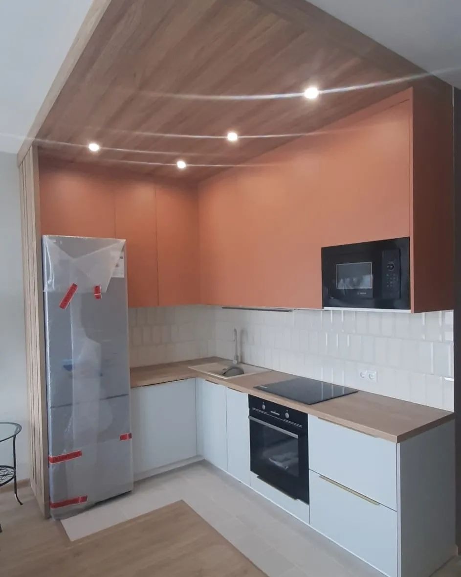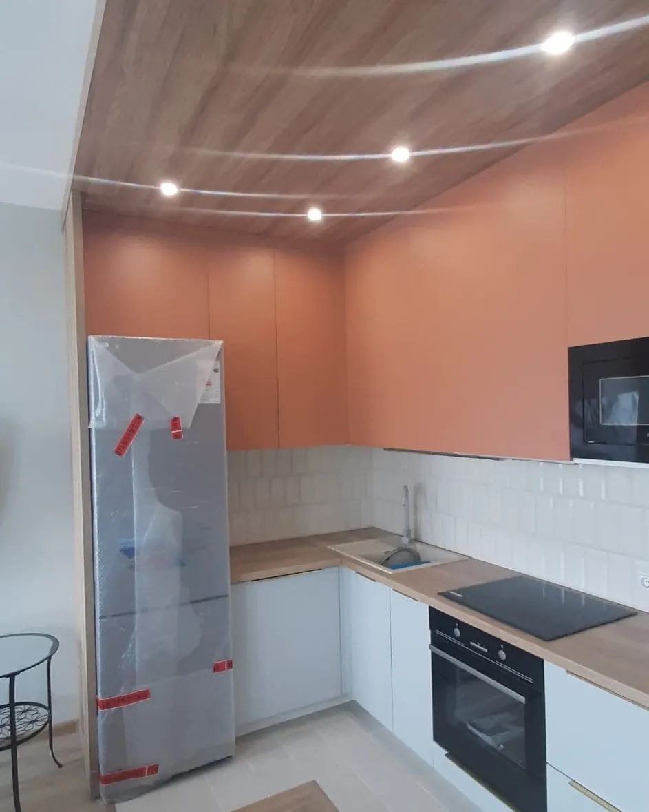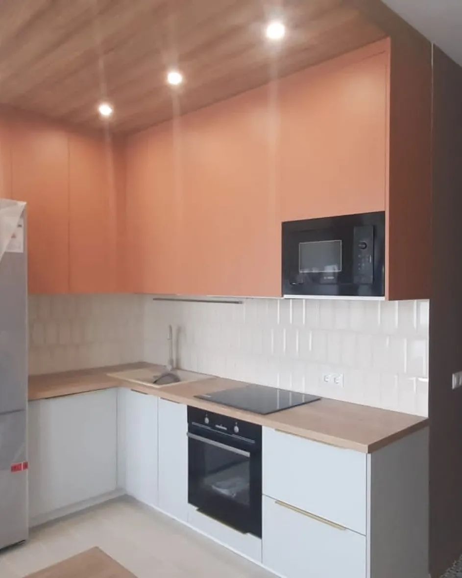 Материал фасада и корпуса: ЛДСП 16 мм. Ширина кухни 220 см.